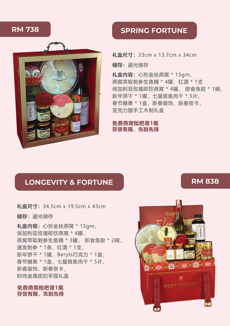 | Packages | Full Bloom, Happy Go Lucky, Spring Fortune, Longevity & Fortune, Abundance Wealth, Wealth & Prosperity |
